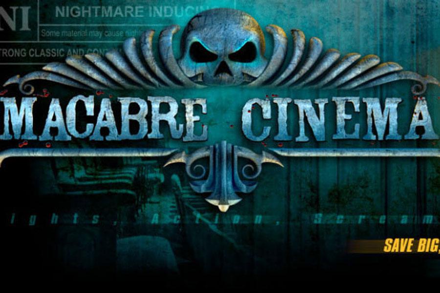 If you choose to enter, Beware!!! Macabre Cinema is full of surprises, tricks, illusions and thrills - guaranteed to scare even the bravest of souls: the floors are uneven; the 5 story spiral slide is fast, deep and dark; you WILL be enveloped by creeping fog and vapors; ghouls, monsters and other Demons of the night will leap out at you; you will be cast into total darkness and subjected to loud noises so Be Careful!! Watch your step!!